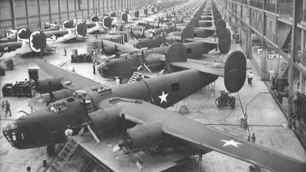 factory on hotel stationery and proved them wrong. Willow Run hit one B-24 every 63 minutes — 8,685 aircraft